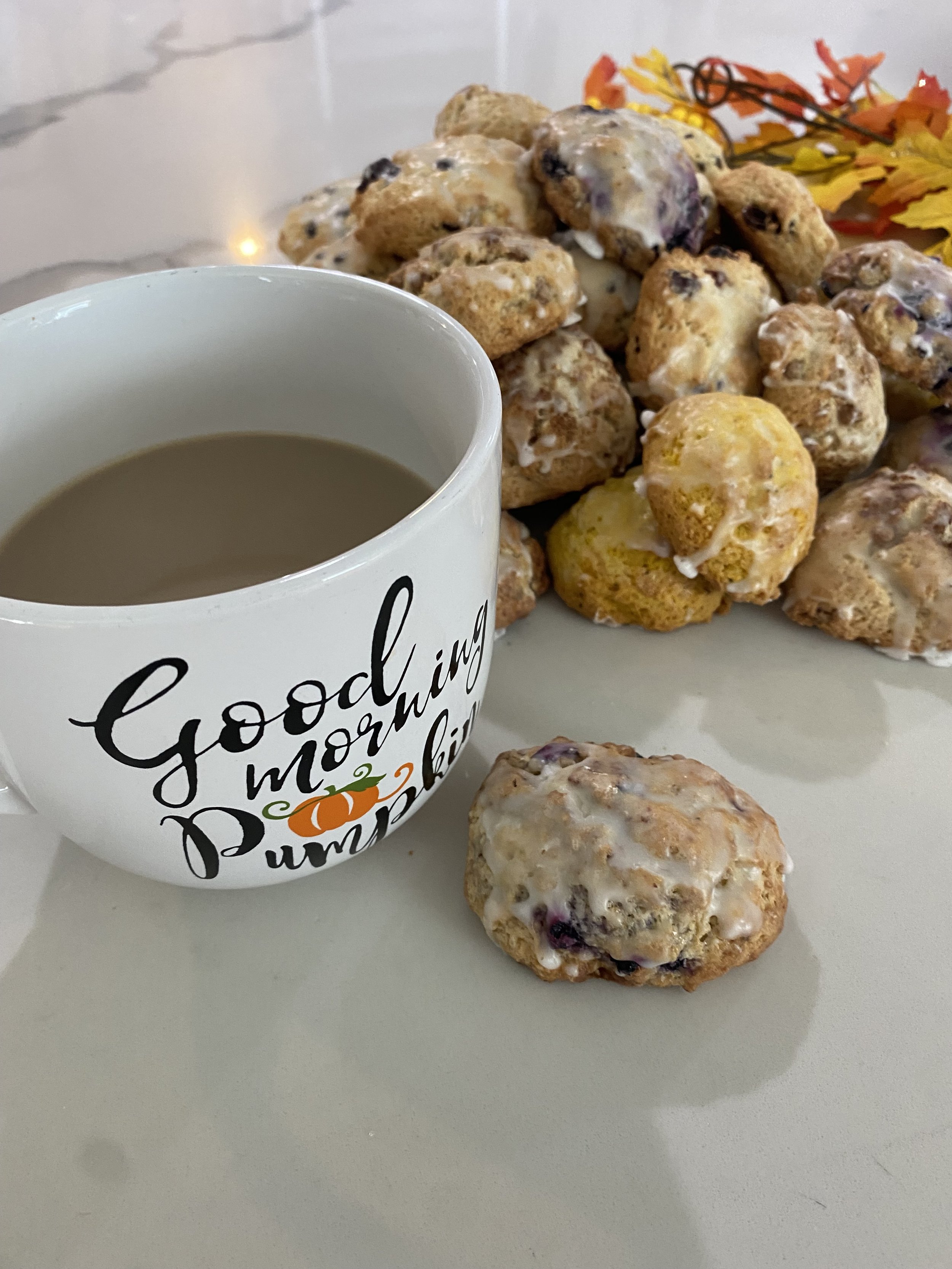 Bursting with fresh blueberries, these scones are lightly sweetened and have a tender, fluffy texture. Ideal for breakfast or a snack, their natural sweetness shines through with every bite.